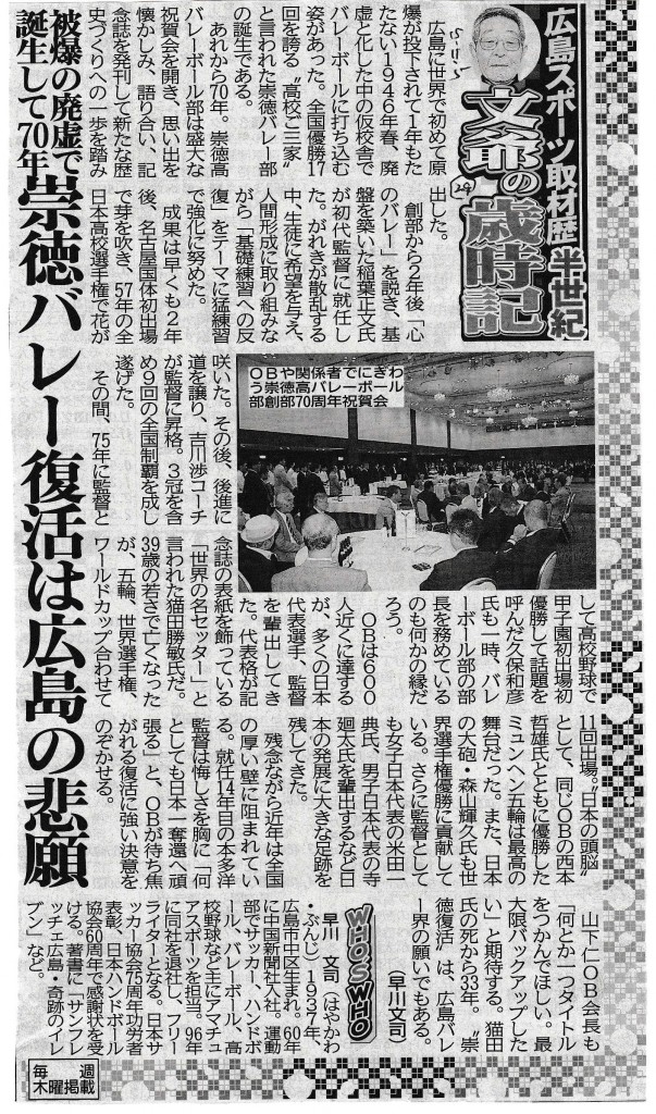 70周年祝賀会の模様がデイリースポーツにて紹介されました。